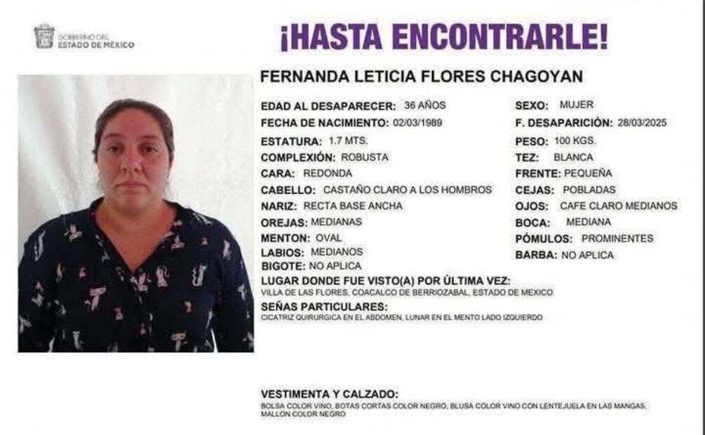 Por orden de fecha de desaparición, se encuentra Fernanda Leticia Flores Chagoyan, a quien vieron por última vez el 28 de marzo en la colonia Villa de las Flores. Ella tiene 36 años de edad, por lo que es la única adulta de este grupo de mujeres.