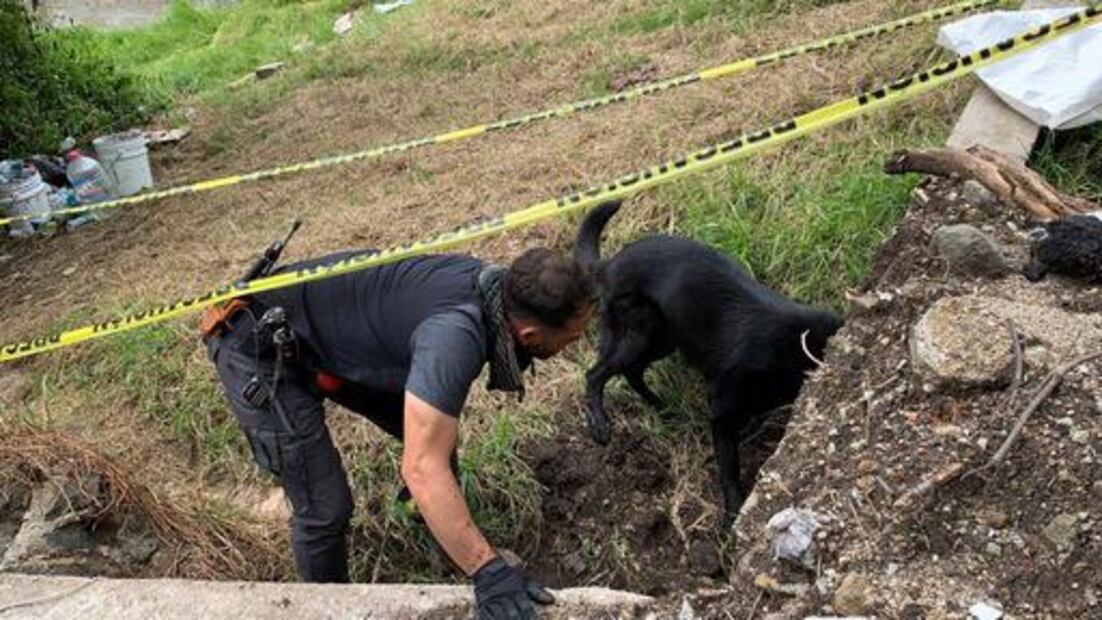 Por ello, llegó a la “Zona Cero” el comandante Daniel García y su K9 binomio canino, quienes de inmediato empezaron a rastrear la zona del deslave.