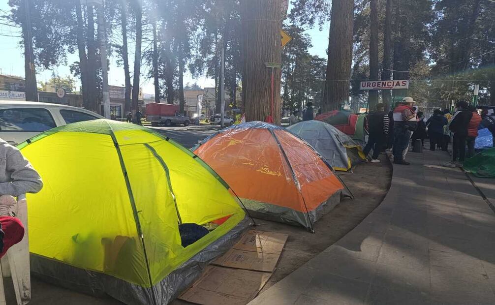 Mientras esperan en la vía pública, algunos familiares que no alcanzan espacio en el albergue llevan casa de campaña para descansar entre las jardineras o la banqueta.